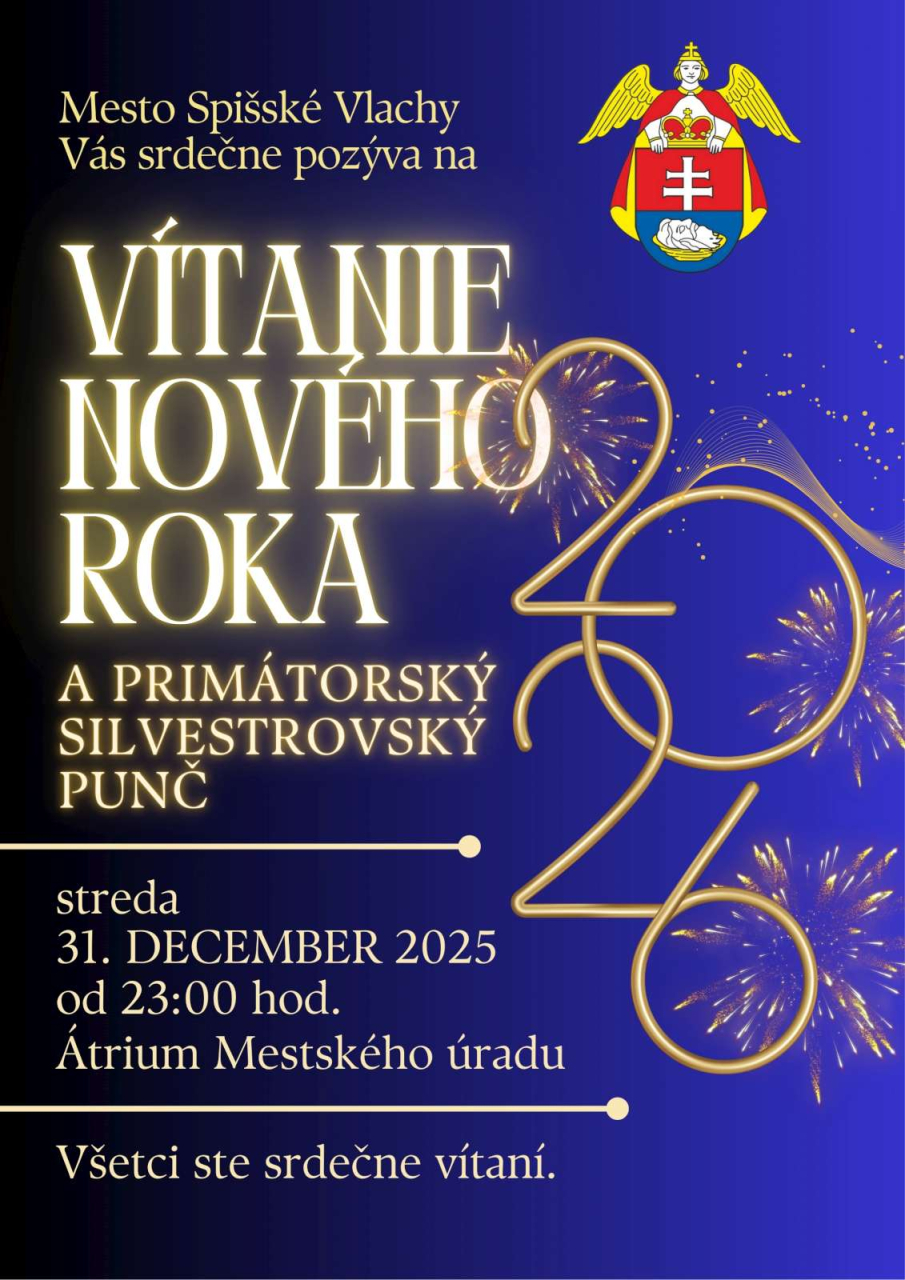 Srdečne Vás pozývame na VÍTANIE NOVÉHO ROKA A TRADIČNÝ SILVESTROVSKÝ PRIMÁTORSKÝ PUNČ.
